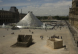 Michal Rovner, Makom II & Makom IV. Installation view, Cour Napoleon, Louvre, Paris, France, 2011. Stone structures